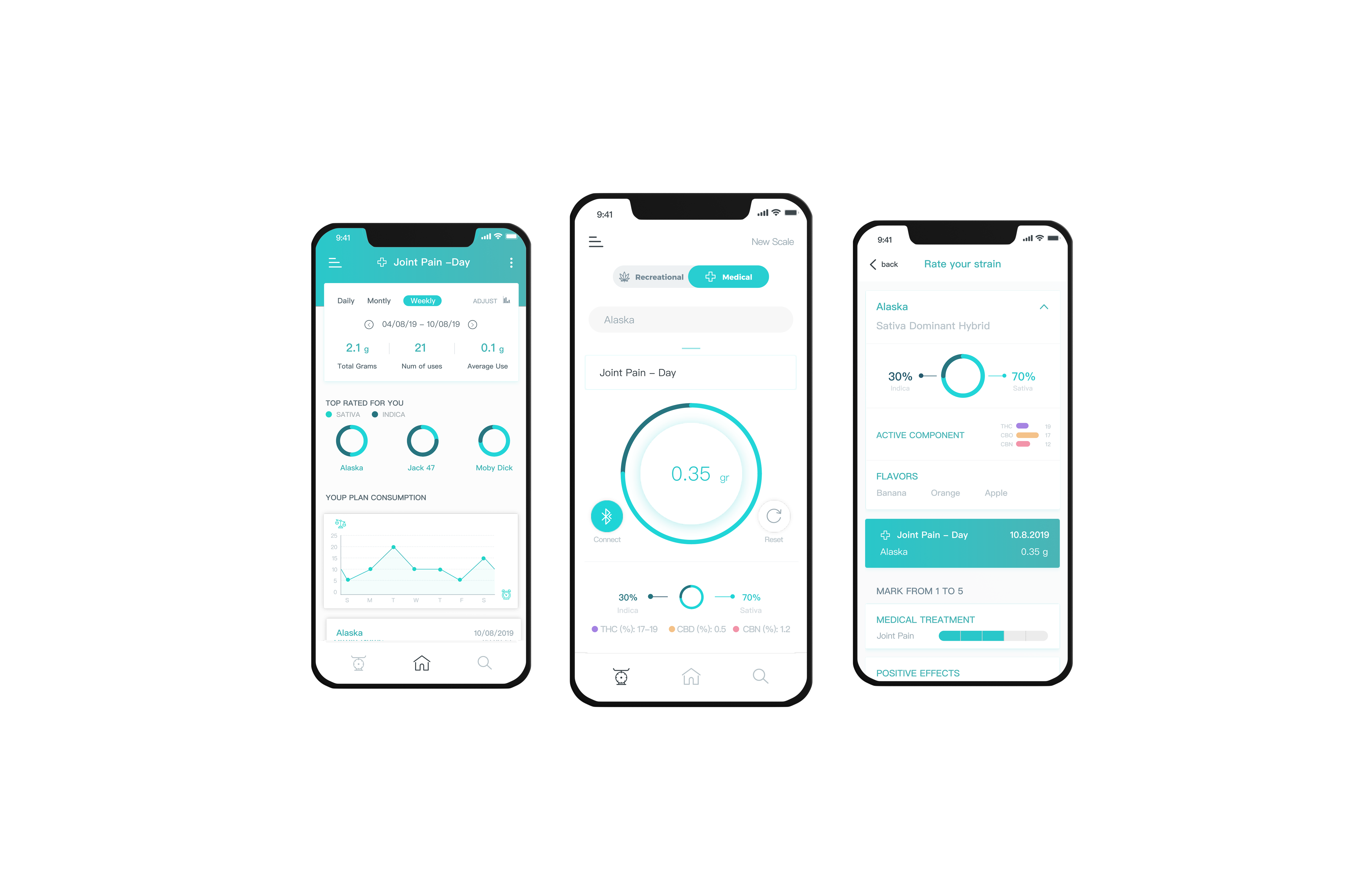 Pair your Grinder&Scale via Bluetooth. The app reads every grind and translates it into your personalized dosage history, strain preferences, and mood tracking.